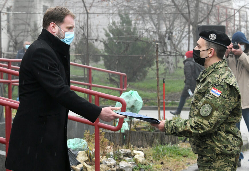 Ministar obrane Mario Banožić i načelnik Glavnog stožera Oružanih snaga RH admiral Robert Hranj zajedno s državnim tajnikom Središnjeg državnog ureda za obnovu i stambeno zbrinjavanje Nikolom Mažarom uručili su u utorak, 8. prosinca 2020. godine četvorici pripadnika Hrvatske vojske ključeve i ugovore o najmu stanova u gradu Petrinji.