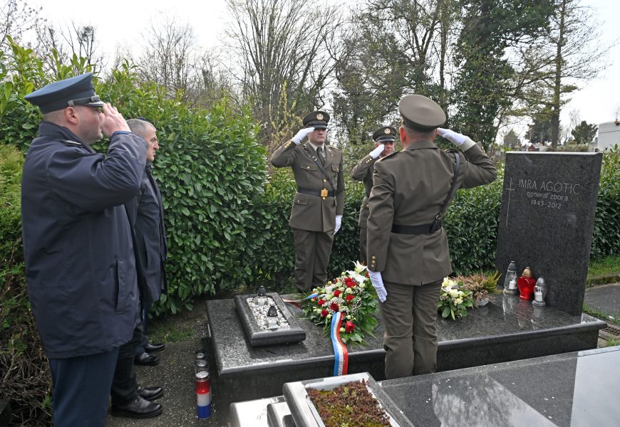 Obljetnica smrti prvog zapovjednika Hrvatskog ratnog zrakoplovstva i protuzračne obrane generala zbora Imre Agotića obilježena je na gradskom groblju Mirogoj u Zagrebu