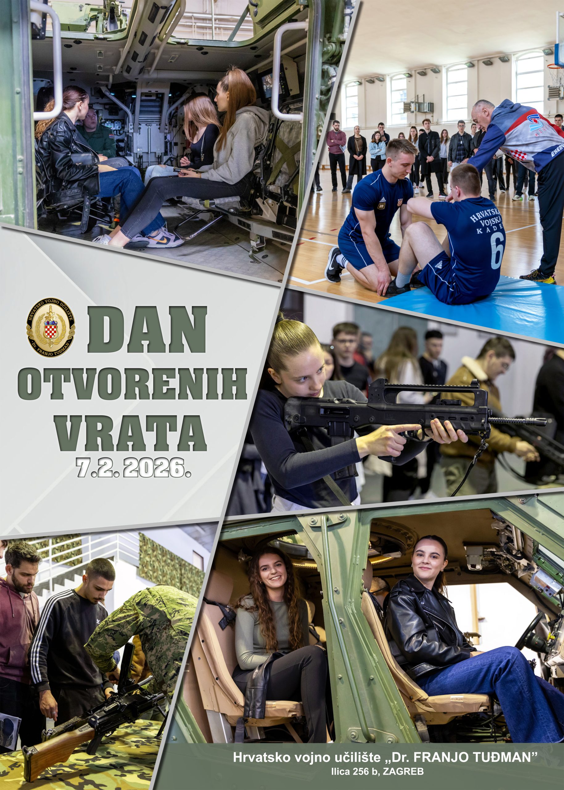 Dan otvorenih vrata Hrvatskog vojnog učilišta “Dr. Franjo Tuđman” održat će se u subotu, 7. veljače 2026., od 10 do 12:30 u vojarni “Petar Zrinski” u Zagrebu te od 10 do 14 sati u vojarni “Admiral flote Sveto Letica – Barba” u Splitu.