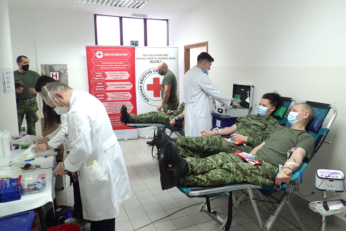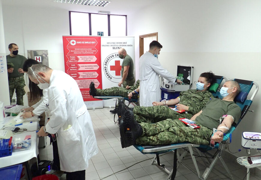 U Središtu za borbenu obuku na vojnom poligonu “Eugen Kvaternik” Slunj održana je u četvrtak 10. ožujka 2022. prva ovogodišnja akcija dragovoljnog darivanja krvi.