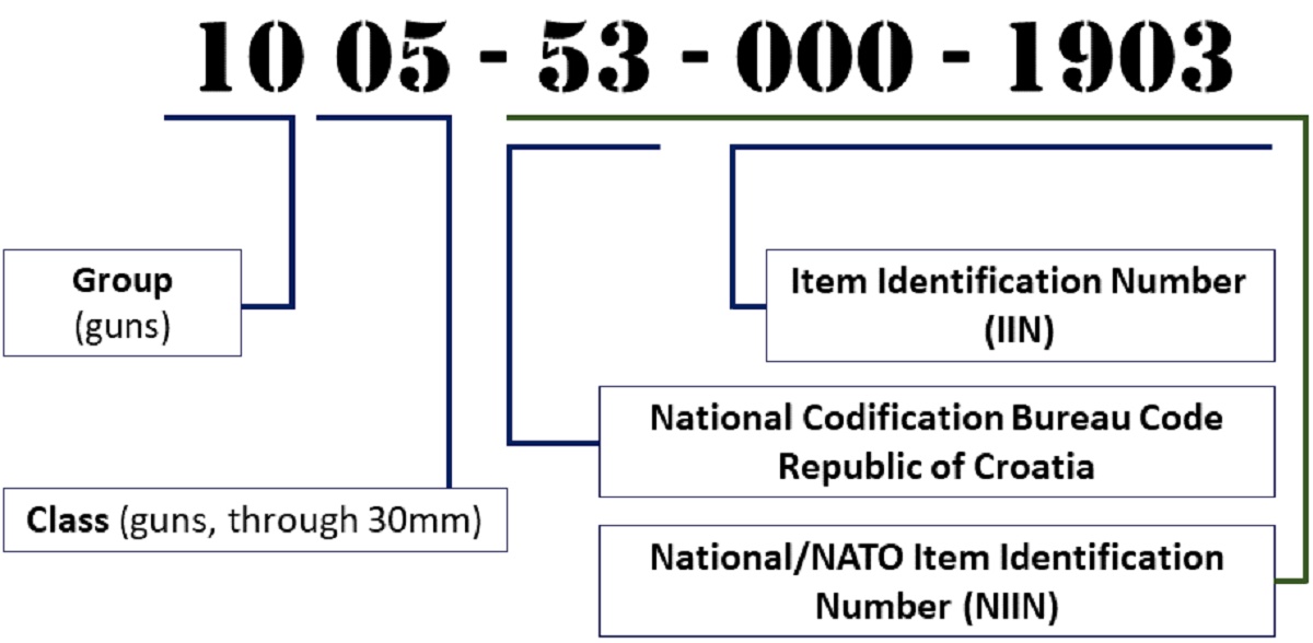 On the basis of the aforementioned Ordinance, the NSN is awarded with the material resources of the Ministry of Defense and the Croatian Armed Forces in accordance with the rules and procedures of the NCS. It is used in its unchanged form during its acceptance, as a national codification designation, in the logistics information system and material records of the Ministry of Defense and the Croatian Armed Forces.