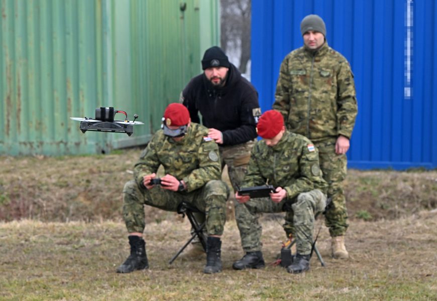 Na vojnom poligonu “Gašinci” tijekom ovog tjedna, od 19. do 23. siječnja 2026., provodi se obuka za operatera FPV dronova na kojoj sudjeluju budući instruktori za temeljno vojno osposobljavanje.