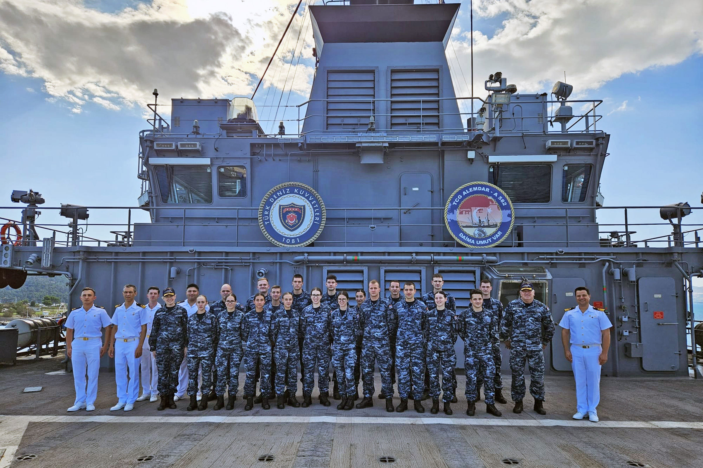 Spasilački brod TCG “ALEMDAR” (A-582) izgrađen je u brodogradilištu Istanbul Naval Shipyard, a namijenjen je za provedbu podvodnih i površinskih spasilačkih misija. Kadeti Vojnog pomorstva razgledali su opremu na brodu te su se upoznali s pomorskim taktikama pretraživanja i spašavanja. Posjet je poslužio i kao prilika za profesionalnu razmjenu iskustava nastavnika, kadeta i posade TCG-a “ALEMDAR”.