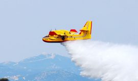 Ukupno četiri aviona CL-415 Canadair PP NOS OS RH gasila su požar kod mjesta Drvenjak na padinama planine Svilaje.