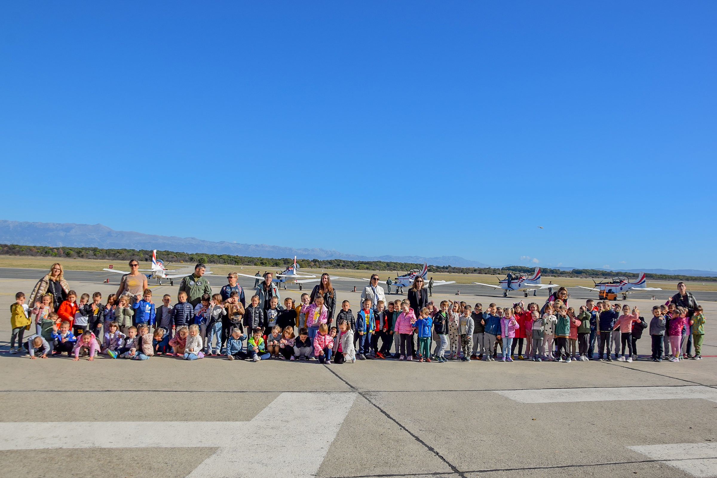 Tijekom posjeta djeca i njihovi voditelji razgledali su avione i helikoptere, na kojima lete hrvatski vojni piloti, te izložene stare letjelice.