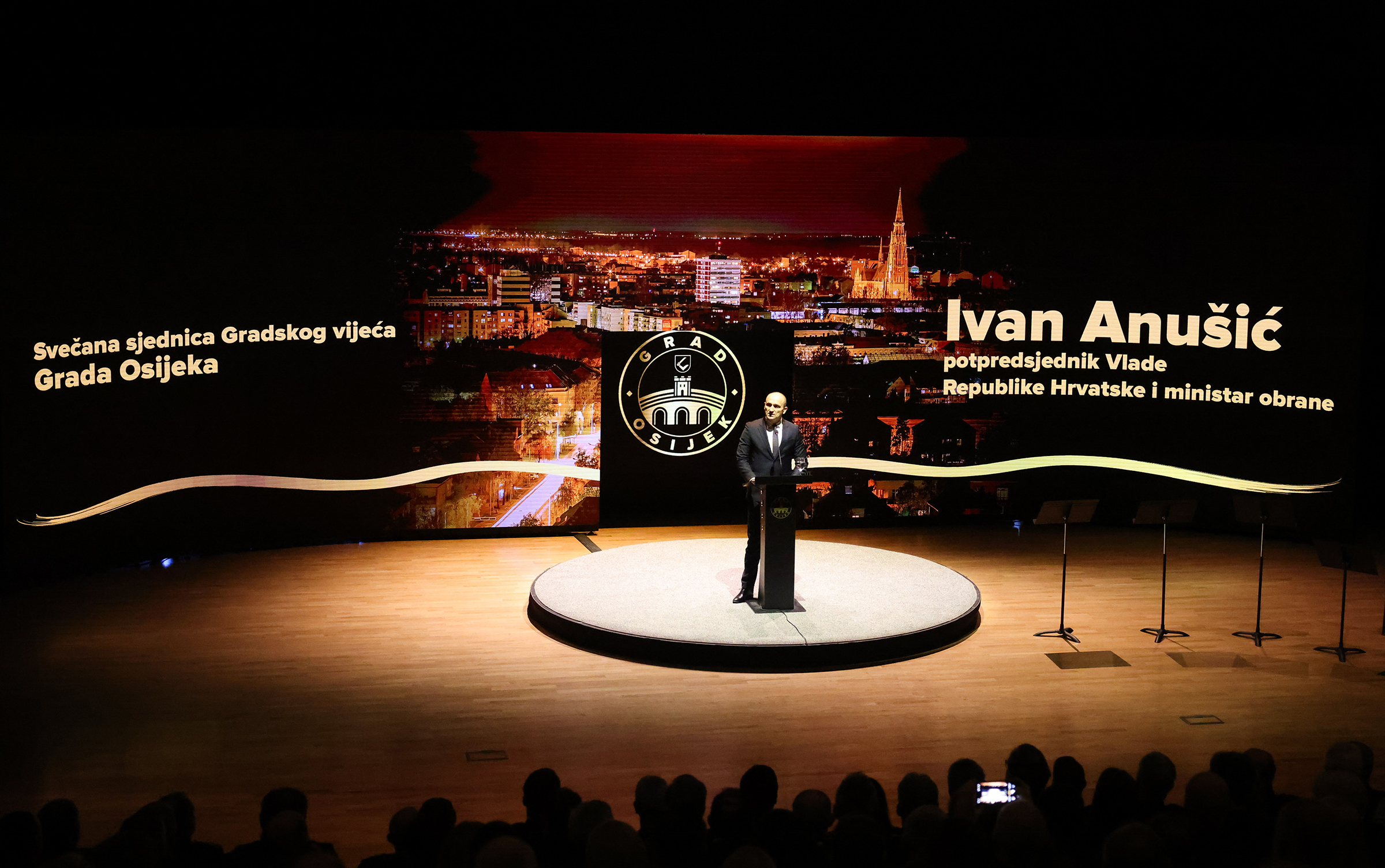 Izaslanik predsjednika Vlade, potpredsjednik Vlade Republike Hrvatske i ministar obrane Ivan Anušić nazočio je danas, 2. prosinca 2025., svečanoj sjednici Gradskog vijeća Grada Osijeka.