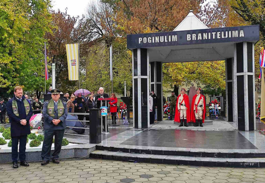 Kod spomen obilježja poginulim hrvatskim braniteljima, obitelji poginulih branitelja i visoka izaslanstva položila su vijence i zapalila svijeće. Molitvu je predvodio velečasni Josip Filipović i kapelan Marko Peulić.