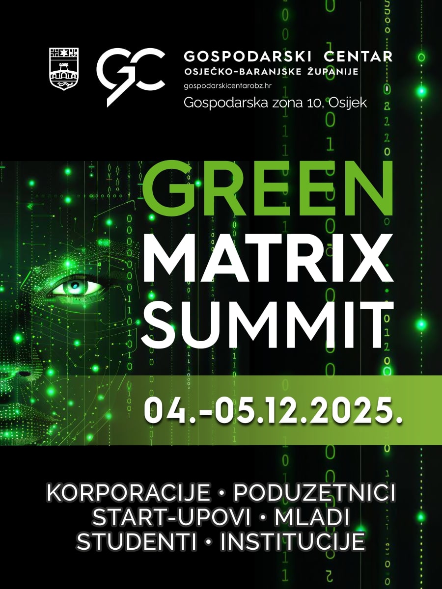 Green Matrix Summit održava se 4. i 5. prosinca 2025. u Gospodarskom centru Osječko-baranjske županije, Gospodarska zona 10, u Osijeku