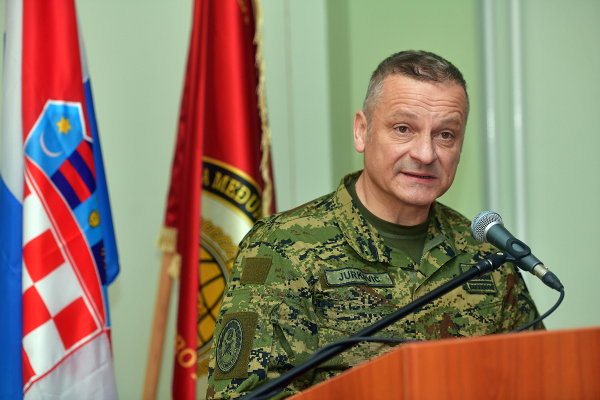 “Nekima je možda nespojiva kombinacija vojnika i mirovnjaka, no vi ste tijekom proteklih 19 godina upravo svojim djelovanjem pripremili vojnike, dočasnike i časnike da budu promicatelji mira, tolerancije, suživota, ljudskih prava, načela pravednosti i demokratskih vrijednost u kriznim i sukobom zahvaćenim područjima širom svijeta”, rekao je Jurković i dodao kako Hrvatska vojska neprestano razvija svoje međunarodne aktivnosti; planiraju se nova područja suradnje te se time postavljaju novi zahtjevi po pitanju obuke i pripreme pripadnika HV-a za odlazak u misije i operacije.