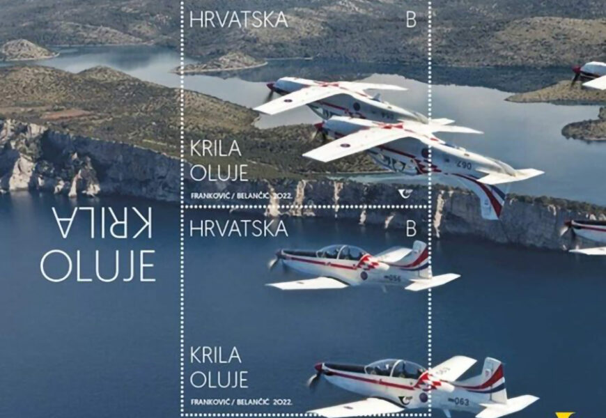 Hrvatska pošta danas je u optjecaj pustila novi poštanski blok s motivom impresivnog formacijskog leta akrobatske grupe “Krila Oluje”