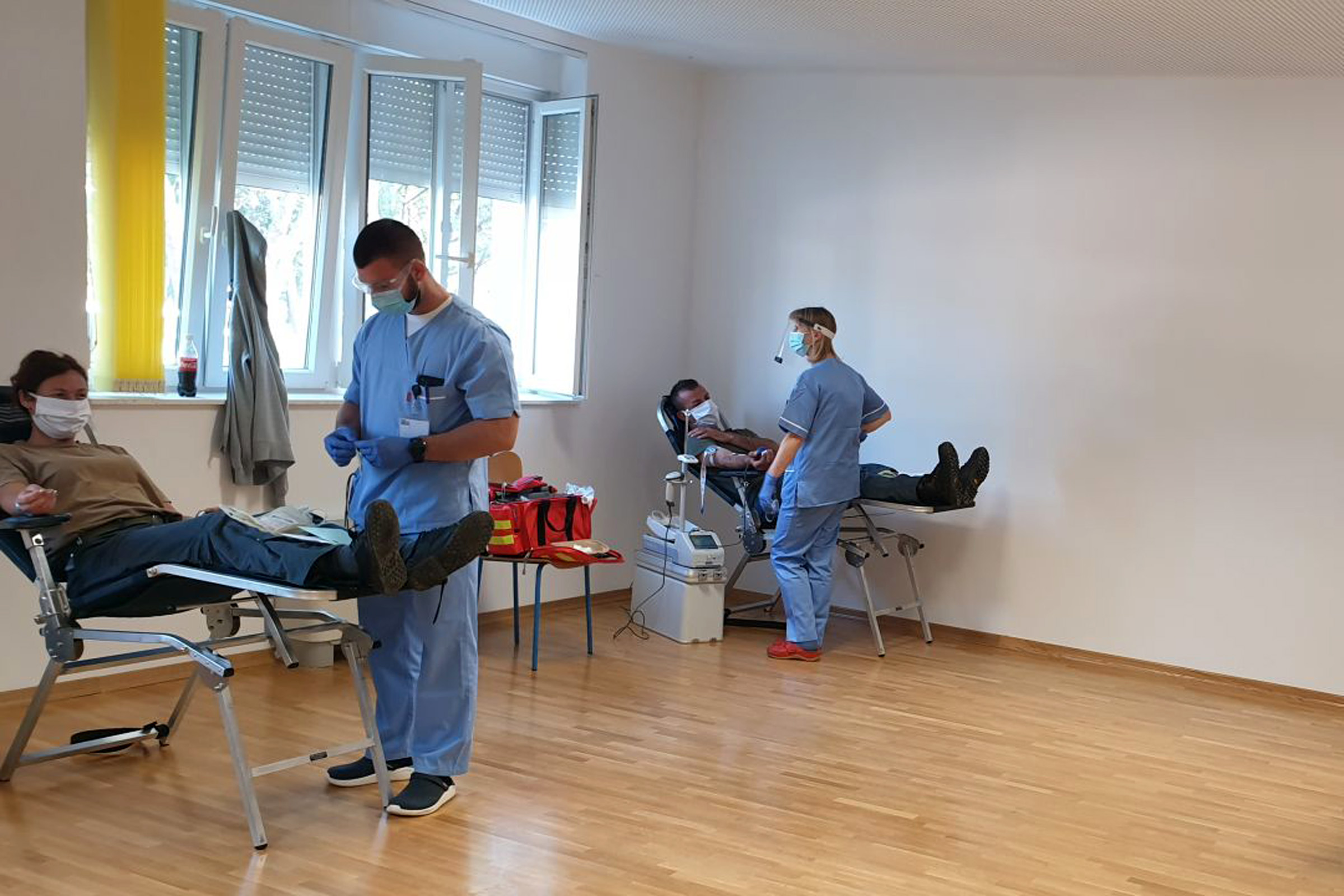 Pripadnici postrojbi Hrvatske vojske iz vojarne “Pukovnik Mirko Vukušić” u Zemuniku Donjem uključili su se u ponedjeljak, 27. travnja 2020. u humanitarnu akciju dobrovoljnog darivanja krvi.