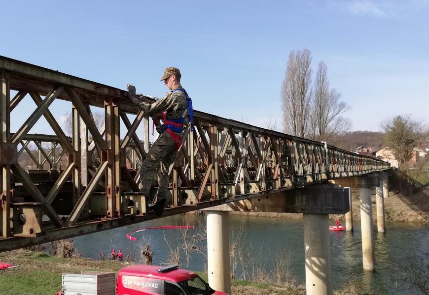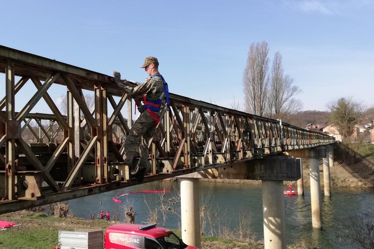 Pripadnici Inženjerijske pukovnije na sanaciji mosta u Karlovcu