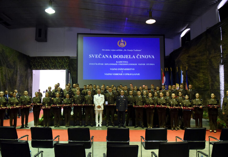 Na Hrvatskom vojnom učilištu „Dr. Franjo Tuđman“ u četvrtak 1. rujna 2022. godine održana je svečanost dodjele prvih časničkih činova kadetima 15. i 16. naraštaja Sveučilišnih studijskih programa Vojno vođenje i upravljanje i Vojno inženjerstvo.