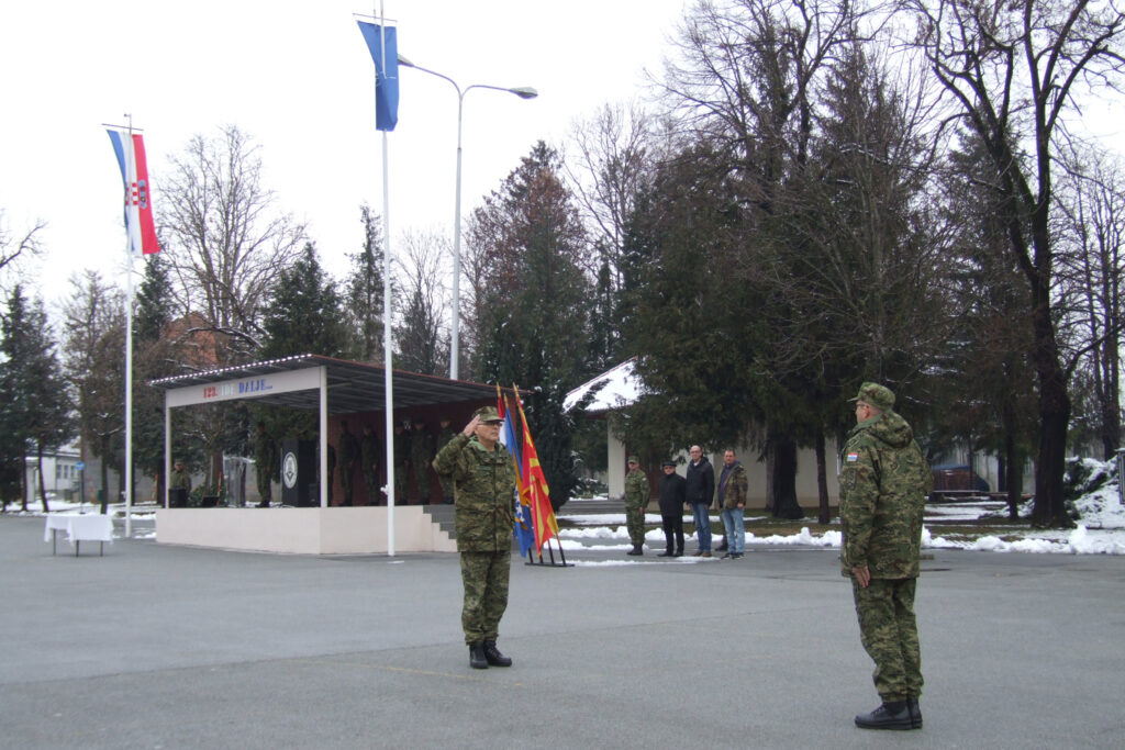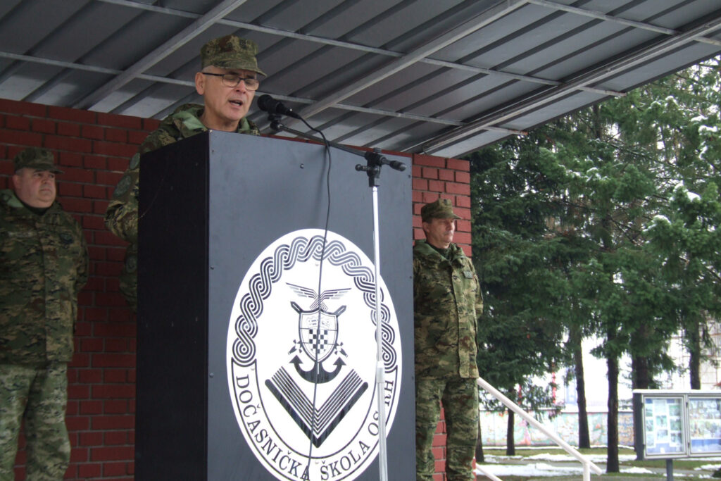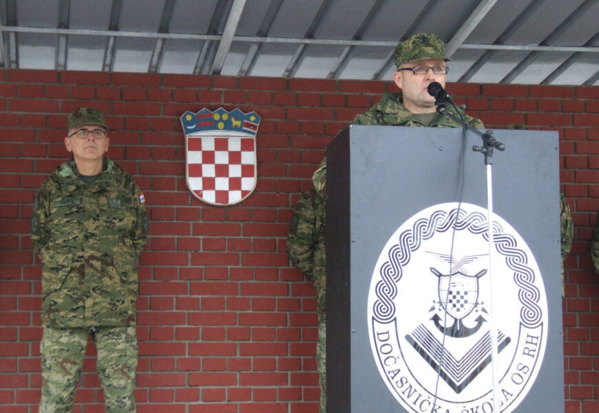 Pukovnik Zdenko Šakota tom je prigodom predao zastavu Dočasničke škole pukovniku Goranu Ozanjaku.