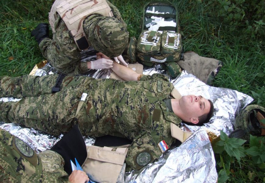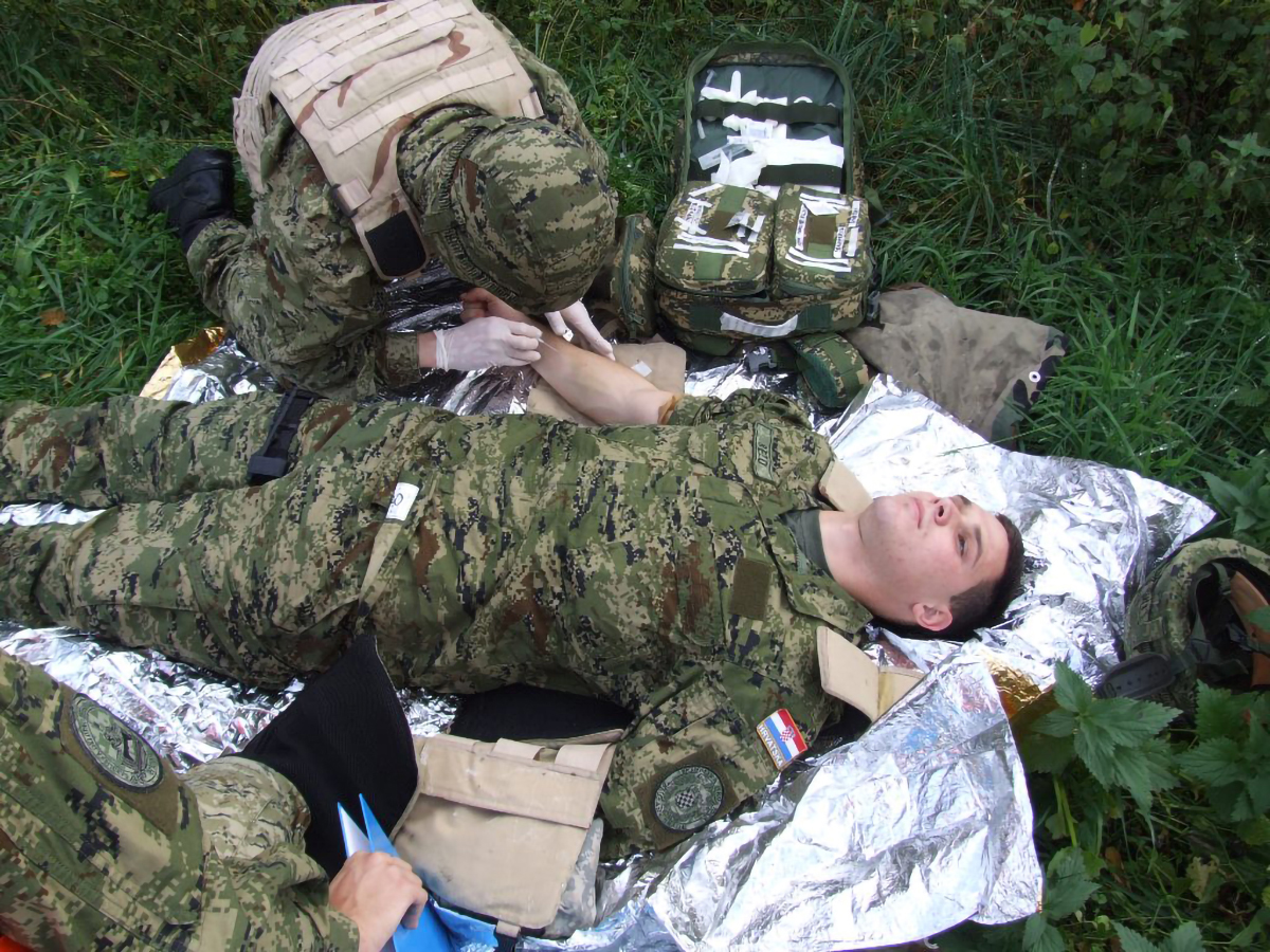 Na kraju praktičnog dijela na logističkom vježbalištu “Glavica” provodi se vježba Taktičko zbrinjavanje ozlijeđenih gdje su polaznici u simulaciji borbenog okružja u kojem ima ranjenih od pješačkog naoružanja i minsko-eksplozivnih sredstava morali provesti zadaću, a potom zbrinuti ozlijeđene i pozvati pomoć.